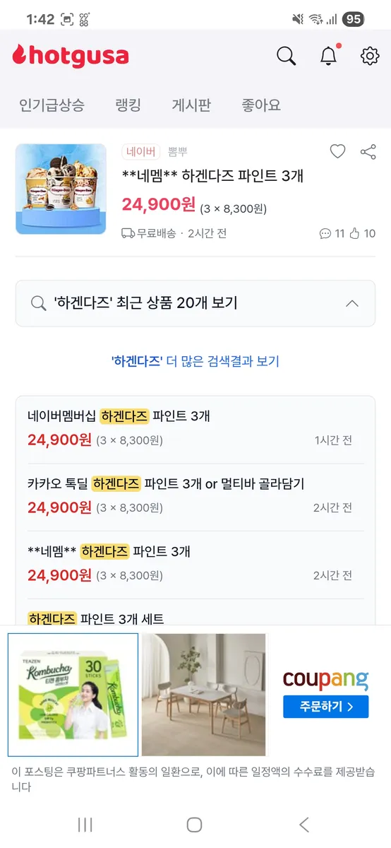 - 최저가, 개당최저가 표기로 쉽게 핫딜 가격 파악
